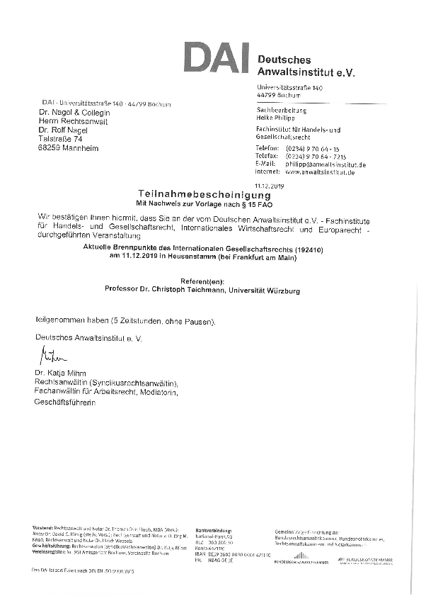 Aktuelle Brennpunkte des Internationalen Gesellschaftsrechts (Dezember 2019)