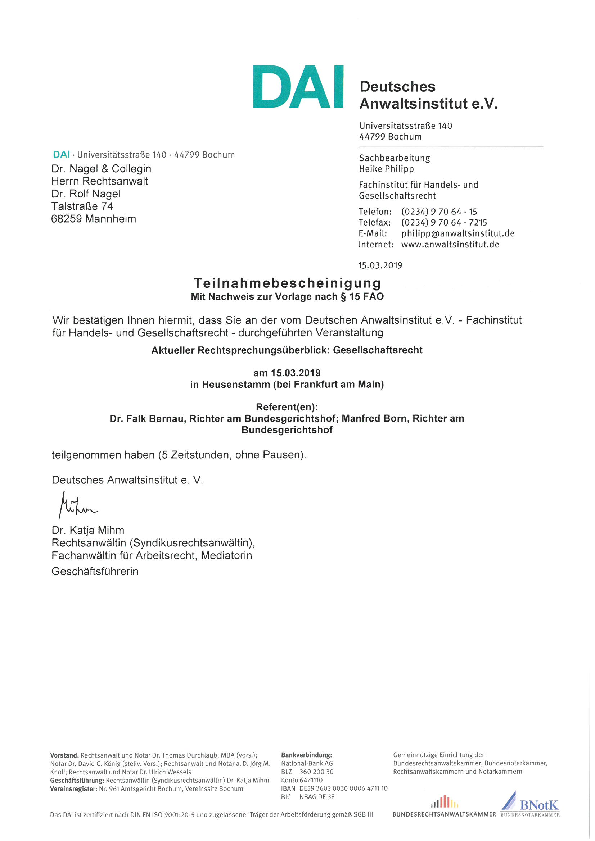 Aktueller Rechtsprechungsüberblick: Gesellschaftsrecht (März 2019)